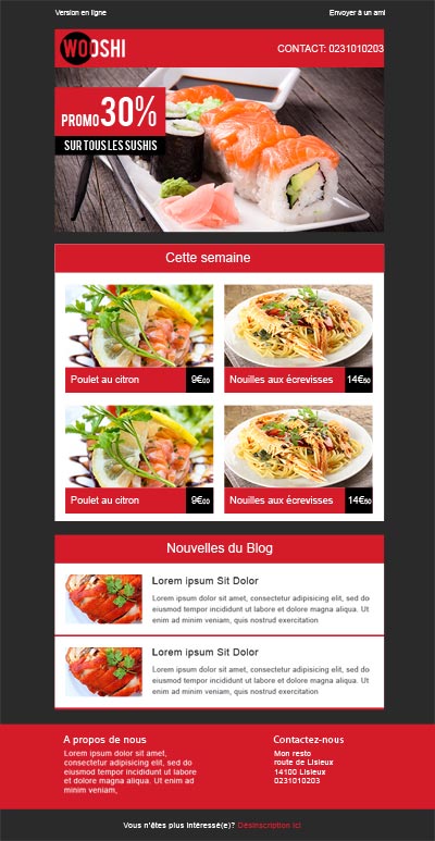 Le visuel de votre newsletter est créé dans le respect de votre charte et de manière à mettre en valeur vos produits et services.